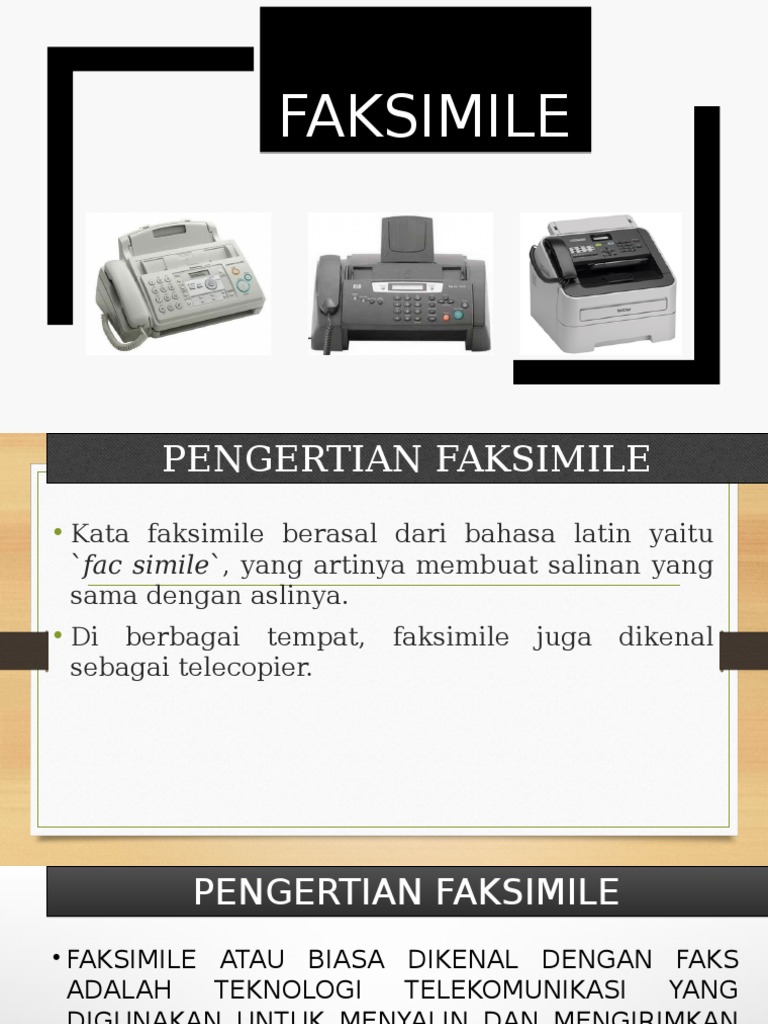Kata faksimile berasal dari bahasa latin yaitu fac simile make similar yang artinya membuat salinan yang sama dengan aslinya. Pada postingan di atas pengertian dari kata facsimile machine Teknologi Informasi berasal dari beberapa sumber bahasa dan website di internet yang dapat anda lihat di bagian menu sumber. Menurut Kamus Besar Bahasa Indonesia KBBI kata yang baku tetap faksimile.