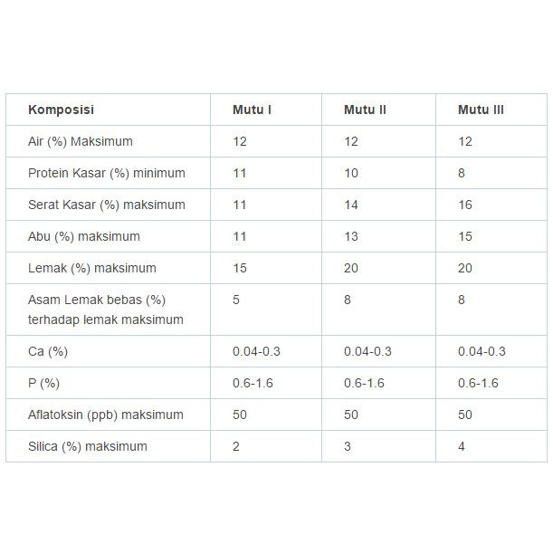 Menyatakan bahwa dedak dengan kandungan serat kasar 6-12 memiliki kandungan lemak 141 protein kasar 1385 sedangkan menurut National Research Council 1994 dedak padi mengandung energi metabolis sebesar 2100kkalkg protein kasar 129 lemak 13 serat kasar 114 Ca 007 P tersedia 021 serta Mg 022. Dedak halus jagung dan Consentrat. 220 mgkg Riboflavin.