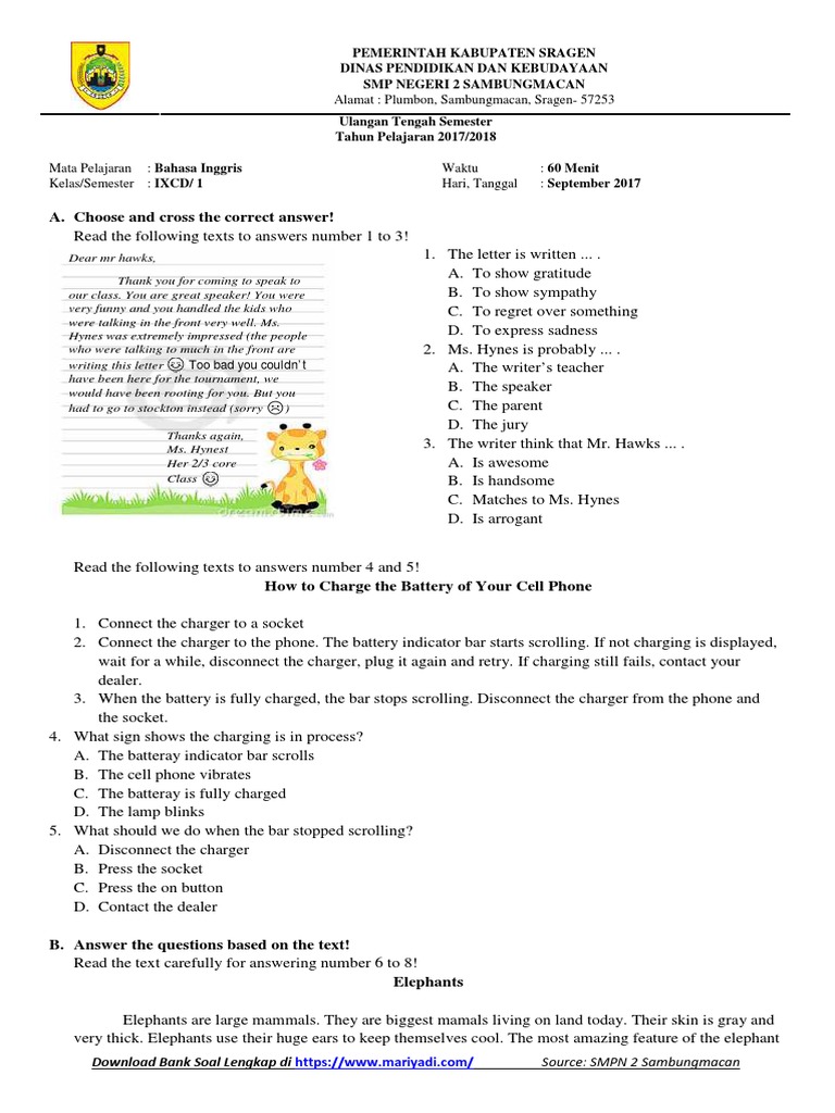 11 Maret 2011Kelas. Contoh Soal Ulangan Tengah Semester 2 Bahasa Inggris Smp Kelas 7 Belajar Bahasa Inggris Online Gratis. Kisi Kisi Soal Dan Kunci Jawaban Bahasa Inggris Smp Kelas 7 Semester Genap Kurikulum 2013 Didno76 Com.