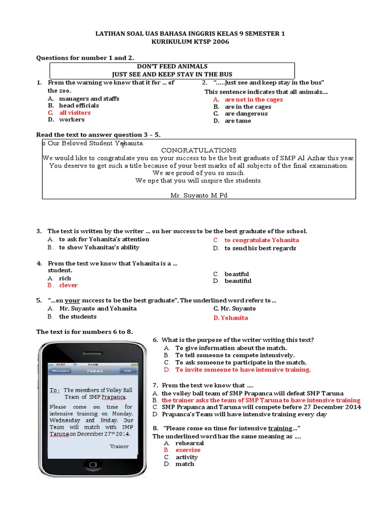 Soal Mid Semester Kelas Ix Bahasa Inggris Ktsp Fasrchicks