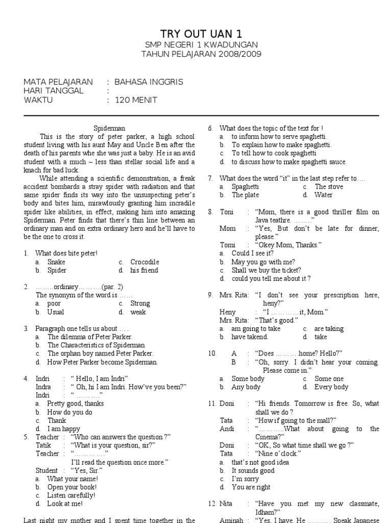 Soal Try Out Uan Bahasa Inggris Kelas Ix