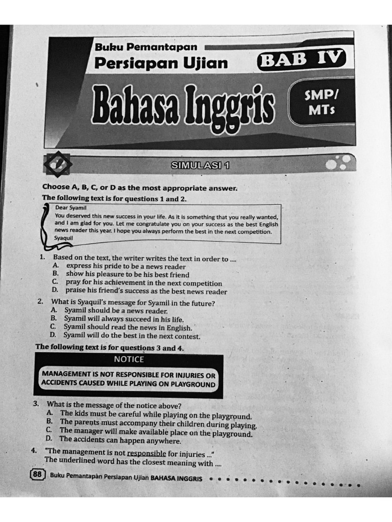 Soal tes masuk smp bahasa inggris 2021. Contoh soal akm bahasa inggris sma dan pembahasannya artikel ini memberikan contoh soal akm numerasi dan literasi untuk asesmen nasional 2021 di tahun 2021 ujian nasional akan diganti menjadi asesmen nasional yang mengukur tiga komponen utama yaitu asesmen kompetensi minimum akm survei karakter dan survei lingkungan belajar. Download Soal Usbn Tik Smp 2021 PDF 1800 MB - SamPDF Unduh Soal Usbn Tik Smp 2021 PDF secara gratis di SamPDF. Pada sebagian SMP terutama pada Sekolah Menengah Pertama Favorit Penerimaan Peserta Didik Baru ada yang memakai Tes Seleksi Masuk SMP.